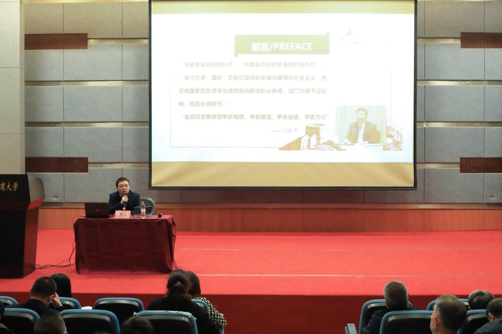 本次党史专题学习邀请到了中共重庆市委党史研究室南方局研究室副主任黎余同志,作《不忘来时路,初心永不移——从重庆党团创建史感悟共产党人的初心和使命》专题党课讲授。黎余主任分别从“星火燎原——马克思主义在重庆的传播”、“党员建团——四川三人与重庆团组织的建立”、“以团代党——中国共产党重庆地方执行委员会的成立”、“泸顺起义——中国共产党武装起义的先声”、“不忘初心——重庆党团创建史的体会”等五个方面,以充分的史料详细梳理了重庆党团创建史,并结合重庆党团创建史中的英雄模范人物,鼓励在座党员牢记共产党人的初心和使命,为中国特色社会主义事业贡献力量。他还从重庆地方马克思主义传播的先驱者选择共产主义的意义和先驱者对共产主义坚如磐石的理想信念两方面谈了对重庆党团创建史的体会。