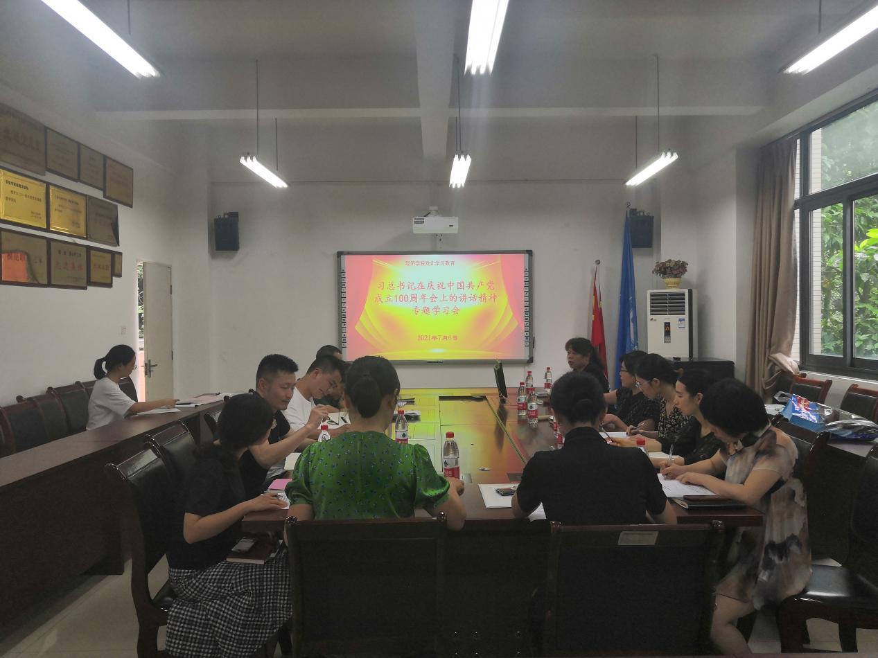 2021年7月6日,太阳成集团tyc122cc党委在田家炳书院50404开展了“习近平总书记在庆祝中国共产党成立100周年会上的讲话”专题学习会,学院党委书记李自维、专职组织员雷菁以及全体支部书记参与了学习会。