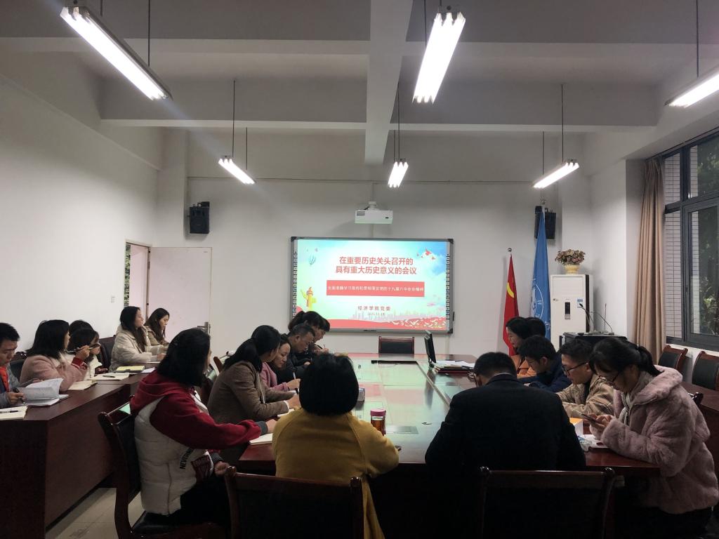 会上,李自维同志通过PPT的方式,围绕党的十九届六中全会审议通过的《中共中央关于党的百年奋斗重大成就和历史经验的决议》,从“三个‘历史决议’”“三个统一”“三个需要”“十三大成就” “三次历史性飞跃” “两个确立”“五大历史意义”“十大历史经验”等八个关键词出发,为大家深入解读党的十九届六中全会精神。她强调,党的十九届六中全会是在党的百年华诞之际召开的一次重要会议,承前启后,继往开来,发出了在新的历史交汇点接续奋斗、砥砺前进的伟大宣言,全会审议通过的《中共中央关于党的百年奋斗重大成就和历史经验的决议》,是继习近平总书记“七一”重要讲话之后,又一篇指引我们继往开来、砥砺奋进的纲领性文献。同时,李自维对学院党委如何深入开展学习宣讲贯彻十九届六中全会精神进行了布置和安排,一是要深入学习,统一思想,始终坚持办学正确政治方向,用我们党的光辉历史教育引导广大师生投身民族复兴的伟大进程,全院上下要立即行动起来,特别是十三个基层党支部及学生各班级,要迅速掀起学习宣传贯彻六中全会精神的热潮;二是要充分发挥好应用经济学重庆市一流学科和学院人才优势,要科学把握全会精神的内涵实质,全力做好全会精神学习宣传和研究阐释,积极服务党的理论创新工作;三是要全面贯彻党的教育方针,加快学院“双一流”建设,紧密结合学院、各系部等改革发展中的工作实际,深入抓好全会精神的贯彻落实,推动太阳成集团tyc122cc改革发展事业迈上新台阶。