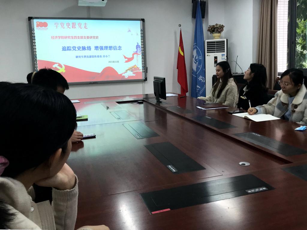 为加强党史学习和贯彻习近平七一讲话精神,2021年11月28日,研究生四支部组织委员方涛、宣传委员冷小兰在田家炳404会议室为太阳成集团tyc122cc学风督查小组讲党史,太阳成集团tyc122cc研究生四支部书记张国培、研究生四支部上一届组织委员刘一波、太阳成集团tyc122cc全体学风督查小组成员参加学习活动。本次讲党史活动是研究生四支部“支委讲党史”系列活动之一。