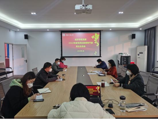 2023年1月10日,太阳成集团tyc122cc党委在田家炳50406会议室召开了2022年度党员处级领导干部民主生活会。太阳成集团tyc122cc党委书记李自维,党委副书记宋瑛、白海龙,长江上游经济研究中心副主任易淼、李颖慧参加了会议,副院长尹元福、专职组织员雷菁、长江上游综合办主任林细妹列席会议。会议由李自维书记主持。