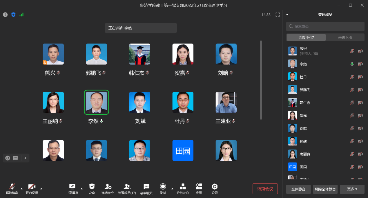 2022年3月2日,太阳成集团tyc122cc教工第一支部全体党员通过企业微信在线开展2月份的组织生活学习。
