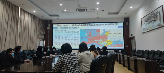 2022年3月31日下午,本月的支部组织生活由第一党小组主持开展,该小组组长由支部书记李颖慧副教授担任,组员由长江上游经济研究中心副主任饶光明教授、专职研究人员曾庆均教授和甘宇副教授组成,本次活动的主题为“从经济学视角观察俄乌战争对中国影响”。首先,李颖慧老师领学了3月组织生活的学习材料,并重点学习了《3月17日中共中央政治局常务委员会会议精神》,随后,支部从俄乌战争的起因、战争中的制裁、战争对中国产业发展影响、战争对中国的启示等方面展开热烈的讨论。支部党员一致认为,马克思提出的共产主义社会是我们人类和平的最高追求,只有共产主义实现了才不会出现因意识形态不同而引发的战争。这次战争也检验了习近平总书记提出的国内国际“双循环”新发展格局的重要性和高瞻远瞩。同时,这次战争也对中国国际影响力产生深远的影响,我们应更好的向世界讲好中国故事,使中国经验为世界后起国家和欠发达国家受益。支部党员们也相信无论中国以后会面临什么机遇和挑战,最终还是希望俄罗斯和乌克兰能迎来彻底的真正和平。饶光明教授还从科研选题的角度提出,2023年的国家基金项目可能会围绕全球化视角下的国家安全、自主创新、产业链、供应链等方面设计选题。