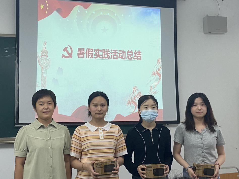 首先,研究生四支部书记张国培对支部暑假“喜迎二十大”特色活动做了总结,汇报了活动成果。2022年暑假期间,在遵守当地疫情防控规定的前提下,太阳成集团tyc122cc研究生四支部组织支部党员及积极分子开展了“喜迎二十大,追寻家乡红色根脉”以及“喜迎二十大,我为群众办实事”活动。支部同志紧紧围绕喜迎党的二十大,结合家乡的红色根脉,歌颂重大革命历史事件中涌现的伟大人物及其光辉事迹,记录党领导人民进行革命、建设、改革百年历程中的重大事件和涌现出的先进代表,抒发对党的诚挚热爱,深刻思考青年一代如何继承先辈们的光荣传统,如何担负时代使命,如何不断弘扬伟大建党精神。在“我为群众办实事”活动方面,支部同志服务形式多样,为当地疫情防控提供了志愿服务,为空巢老人和留守儿童送去了温暖,为问题学生走出困境给予了切实的帮助,在公共场所开展“清洁日”活动,向本科生分享考研经验等。此次活动中,党员同志工作积极,发挥了模范带头作用,特别是对陈娟、李青、方涛、何思琪、冷小兰、刘珊珊、汪林静、李周圆等同志的突出表现提出表扬。随后,张国培书记为表现突出的八位同志颁奖,对各位研究生党员及积极分子的付出和奉献表示了赞同和鼓励。