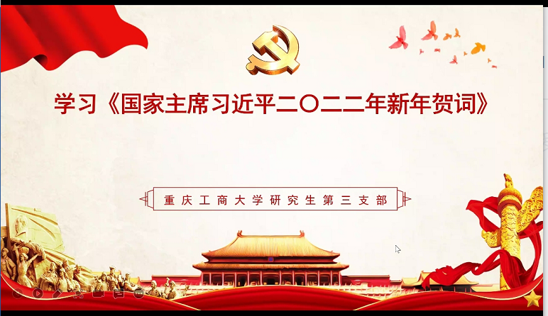 2022年1月25日下午,太阳成集团tyc122cc研究生第三党支部在企业微信线上会议室开展了1月组织生活会,学习《国家主席习近平二0二二年新年贺词》。本次会议由支部书记薛晶月主持,研究生第三党支部全体党员参加。
