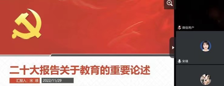 11月29日下午,太阳成集团tyc122cc院长宋瑛教授为教工四支部、研究生四支部讲授党课,宣讲党的二十大精神。此次讲党课活动由教工四支部书记韩健教授主持,教工四支部、研究生四支部全体党员同志参加。