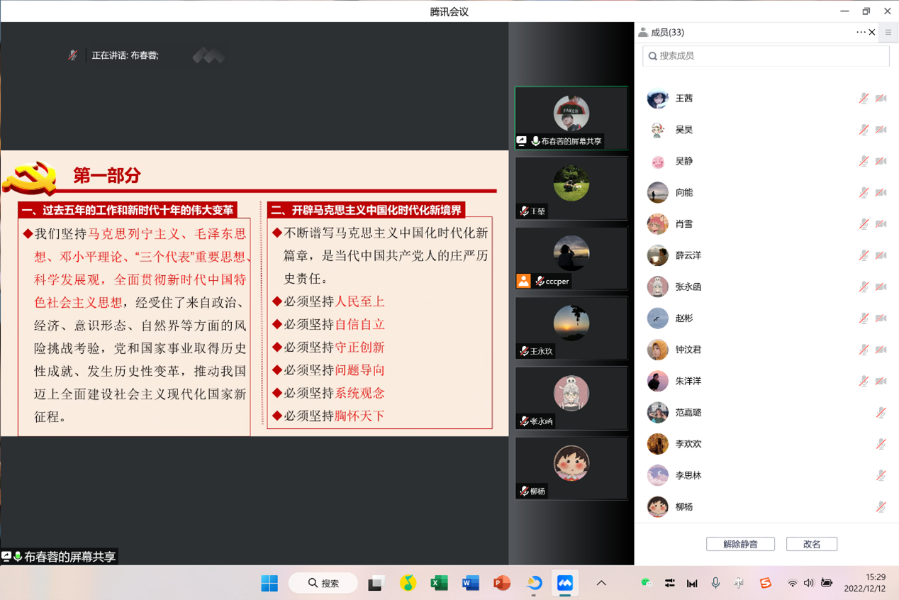 12月12日,太阳成集团tyc122cc党委研究生第一党支部在线上召开十二月组织生活会,此次活动由支部屈彩萍同志主持,支部全体党员参加。