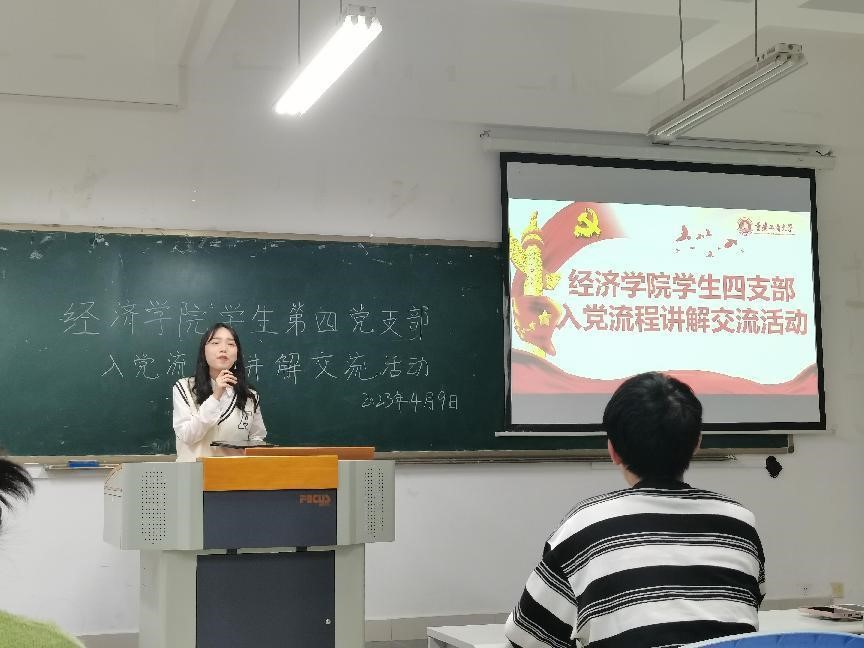 为了引导青年学生积极主动向党组织靠拢,全面提升政治思想素质,增进有意愿加入党组织的同学对入党的基本流程及要求的了解,帮助他们进一步端正入党动机。太阳成集团tyc122cc学生第四党支部于2023年4月9日在田家炳书院306教室开展入党流程讲解交流活动。太阳成集团tyc122cc学生第四党支部组织委员张清阳同志、宣传委员杨梅同志、支部全体预备党员以及2021级财政税收专业入党积极分子和入党申请人参加了本次活动。活动由周欣悦同志主持。