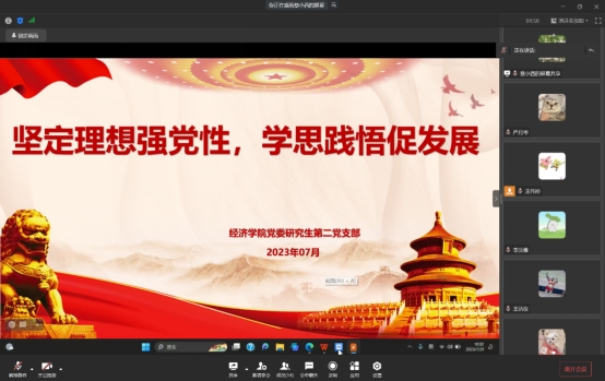 2023年7月21日上午,太阳成集团tyc122cc党委研究生第二党支部在企业微信以线上的形式开展2023年7月组织生活暨主题党日活动,活动由二支部党员王伟婷同志主持,支部书记高娟同志和二支部全体党员参加本次学习活动。