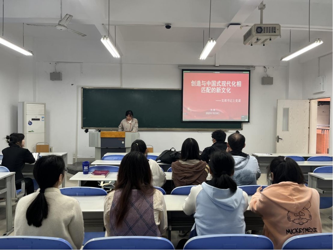 为深入推进文化自信自强,激励学生党员发挥新时代社会主义文化重要作用,11月8日,学院学生第一党支部书记陈璐为学生党员们讲授题为《创造与中国式现代化相匹配的新闻话》的学习贯彻习近平新时代中国特色社会主义思想主题教育专题党课。