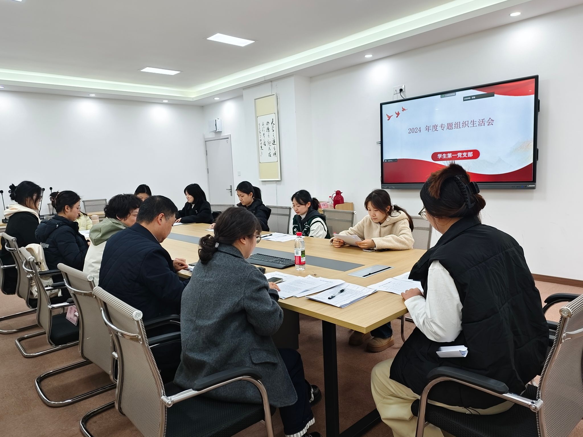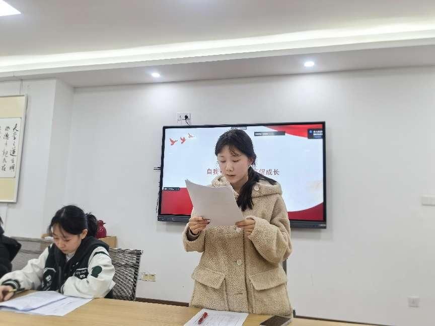 根据会议议程,首先由党支部书记陈璐代表支部委员会报告工作并作对照检查,全面总结了2024年度党建工作成效,重点从政治引领、组织建设、党员教育、支部品牌打造等方面查摆问题,并针对性提出整改措施。参会党员紧密结合此次组织生活会的主题,重点围绕“四个带头”从自身思想、学习、工作实际等方面正视自身不足、深刻查摆问题、明确整改方向。自我批评结束后,支部党员互相开展批评,大家面对面、心贴心,既指出问题,又提出改进方向,真正达到了“红红脸、出出汗”的预期效果。随后,会议进入了民主评议阶段,全体党员依据“优秀”“合格”“基本合格”“不合格”四个等级,对支部正式党员进行客观公正的民主测评。经综合评定,评选出优秀党员4名、合格党员8名,无基本合格和不合格党员。雷菁同志在点评总结中指出,学生第一党支部全体党员紧扣主题、联系实际,严肃认真开展批评与自我批评,查摆问题深刻、剖析原因到位、整改措施具体,需要重点发挥学生党员的示范带头作用,认真做好整改落实“后半篇文章”。陈璐同志代表支部进行表态,雷菁组织员对我们的专题组织生活会进行了全面、细致的点评,为我们下一步的整改工作指明了方向,支部后期将在推动党建与业务的深度融合上持续努力,一体推进支部的“造形”和“铸魂”。
