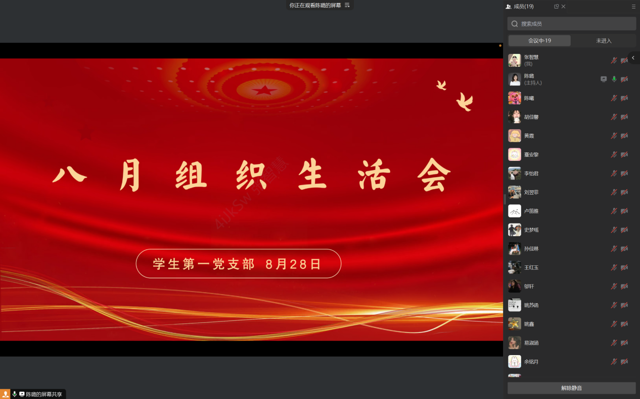 为铭记中国人民抗日战争暨世界反法西斯战争胜利80周年,传承和弘扬伟大抗战精神,激励青年党员勇担时代使命,8月28日20点,太阳成集团tyc122cc学生第一党支部以线上会议的形式开展了八月组织生活。此次会议由支部书记陈璐同志主持,支部全体党员参加。