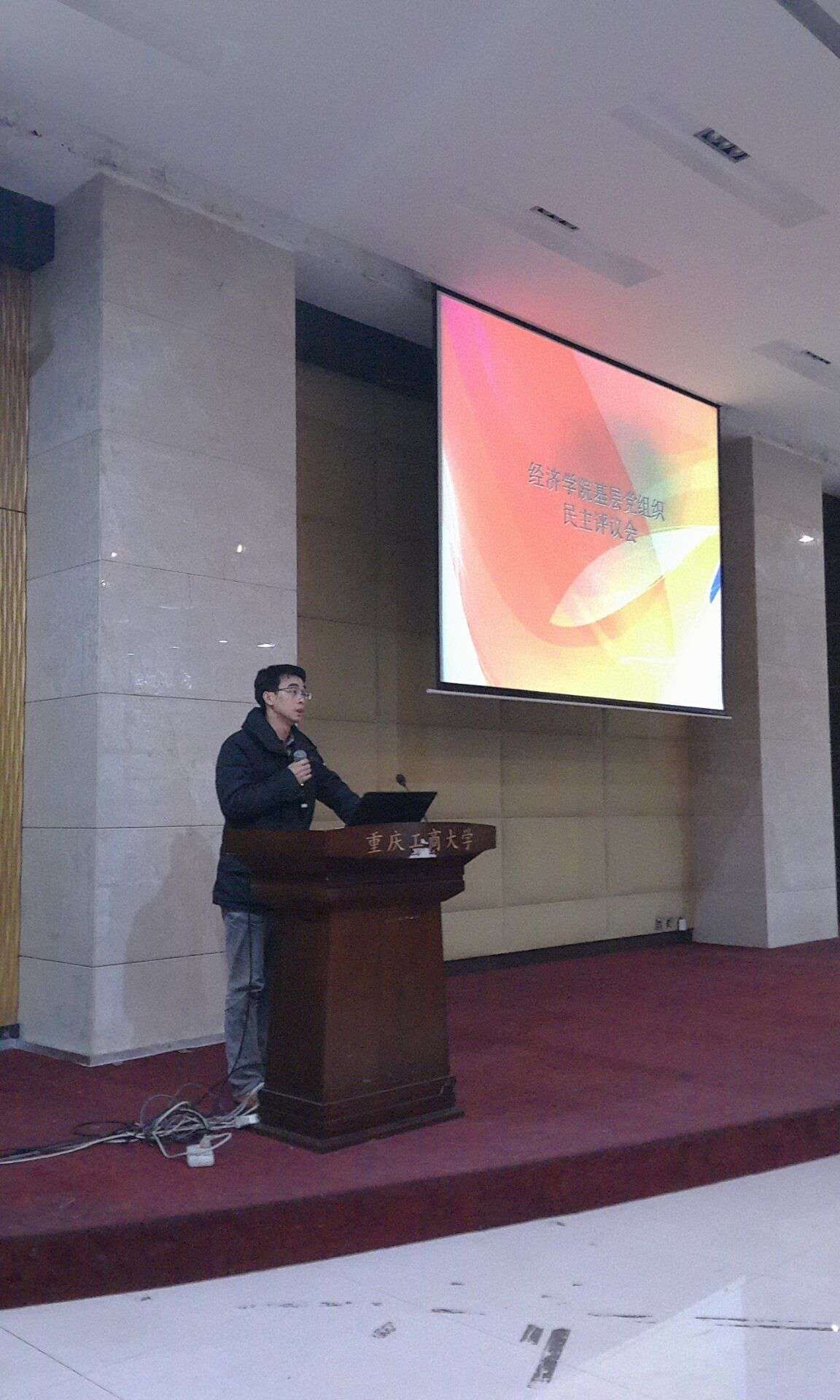 党总支张筱璐书记、学生第一支部支部书记张涛同志、学生第二支部支部书记杨华俊同志、教工支部支部书记李录青同志依次上台进行述职。述职的主要内容主要包含个人履职工作情况、存在的主要问题及原因、下一步工作思路和主要打算等。然后由在场的师生党员当场就几位同志的述职情况进行测评,并将测评原始材料交由总支组织委员归档。