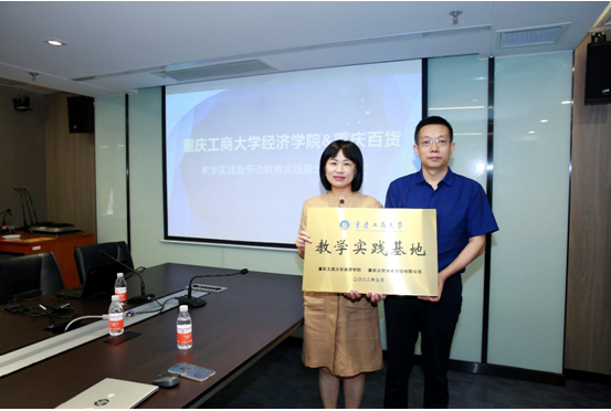 活动第一项是122cc太阳集成游戏太阳成集团tyc122cc副院长宋瑛教授为重庆百货教学实践暨劳动教育实践基地的授牌,重庆百货与122cc太阳集成游戏太阳成集团tyc122cc合作多年,开展了形式多样的实习实践和劳动教育的专项活动,多年来,重庆百货为122cc太阳集成游戏经济学提供大量就业实习岗位,包括暑期、寒假、周末,122cc太阳集成游戏太阳成集团tyc122cc多次邀请重庆百货各部门领导参与行业企业专家进课程活动,提高同学们的行业实践知识素养,深受同学们的好评。授牌是对过往合作的一个总结,也是对未来更加深入和高质量合作的一个启动。