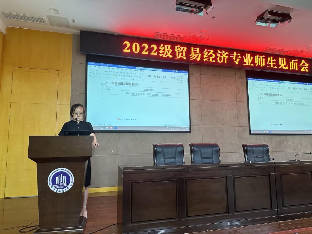 2023年7月6日上午,贸易经济系开展了2022级师生见面会、第九届暑期调研及流通大赛动员会,本次活动有贸易经济系杨海丽主任、王辉、曾蓼、张杰老师,流通大赛队长喻智成老师和辅导员陈璐老师参加。