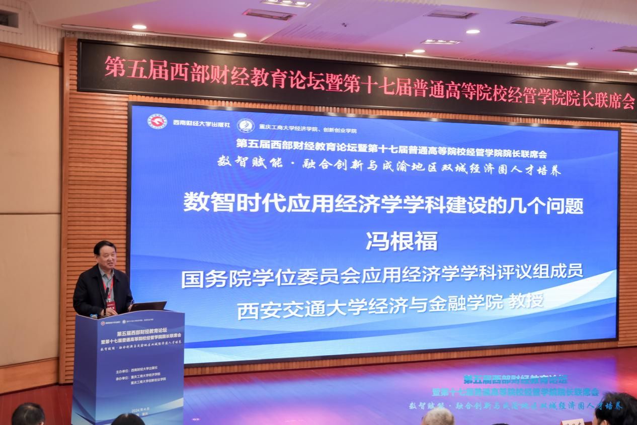 同时,国务院学位委员会应用经济学学科评议组成员,西安交通大学经济与金融学院冯根福教授以“数智时代应用经济学学科建设的几个问题”为主题,从调整应用经济学科专业布局、中国经济学教材建设与应用、学生知识能力与科学素养培养,以及合理定位办出特色与差异化发展、重视对传统专业的升级改造等四个方面,对于如何高质量推进应用经济学的学科建设指明了方向。