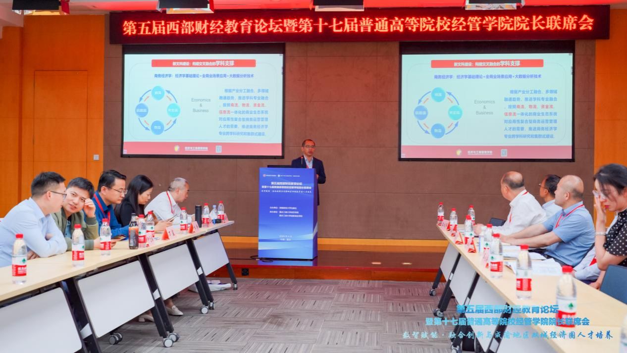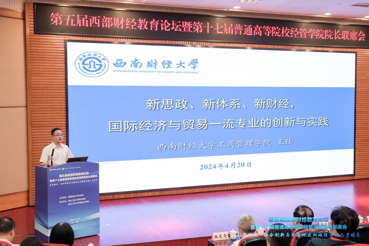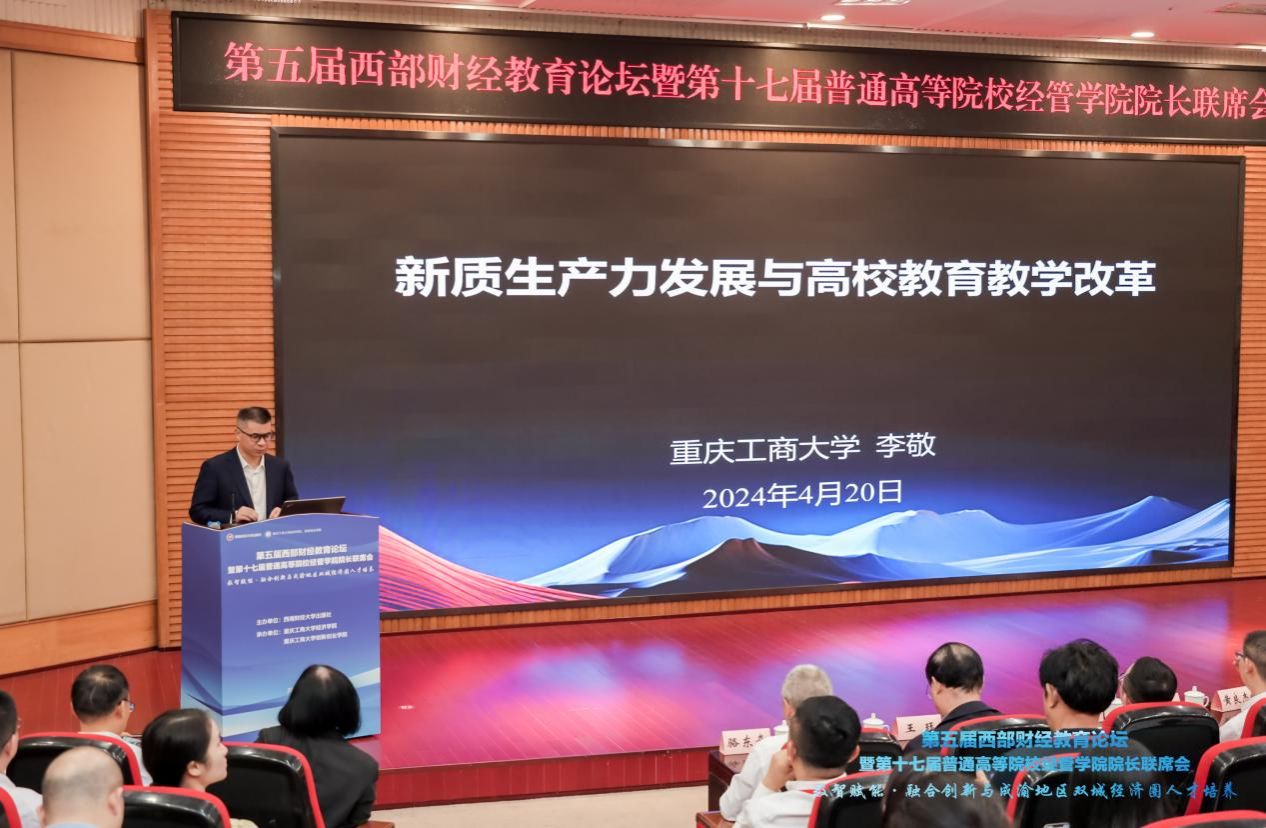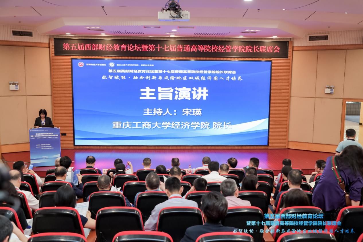 4月19至21日,第五届西部财经教育论坛暨第十七届普通高等院校经管学院院长联席会在122cc太阳集成游戏举行。本次会议由西南财经大学出版社主办,122cc太阳集成游戏太阳成集团tyc122cc、创新创业学院承办,来自山东、广东、广西、贵州、青海、西藏以及川渝地区56所普通高等院校经管学院的院长、专家学者、系主任及教师代表200余人参会,围绕主题“数智赋能·融合创新与成渝地区双城经济圈人才培养”,共同探讨新时代背景下财经教育的机遇与挑战,共谋经济赋能新策略。我院李自维书记、宋瑛院长、尹元福副院长、白海龙副书记、系主任和全体教师参与了这场盛会。122cc太阳集成游戏党委常委、副校长李敬主持了开幕式,宋瑛院长主持了主旨报告环节。