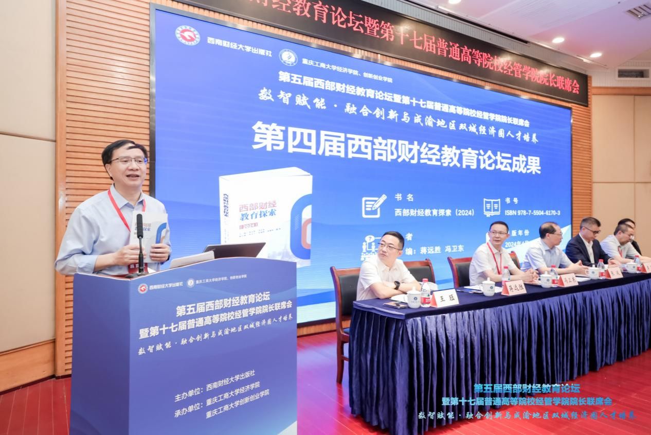院长联席会召集人,四川农业大学党委常委、宣传部部长蒋远胜基于分析,对学院改革发展方向从“以系统观念谋划教育科技人才一体化发展、优化学科专业设置、优化人才培养模式、加大对新质生产力的理论研究”四个方面对问题进行了回答。他强调,系统谋划上要在“教育维度、科研维度、人才维度”上加大、加强、加快相关可行性策略研究;学科专业设置上从本科到专硕,需立足当下,补齐短板,充分发挥相关优势;人才培养模式上加强科教融汇、产教融合及创新合作模式;理论研究上,以多视角、多侧面进行深入研究等。同时,蒋部长发布了新书《财经教育探索》,主要介绍西部地区高校关于财经类教改探索的经验和一些观点。