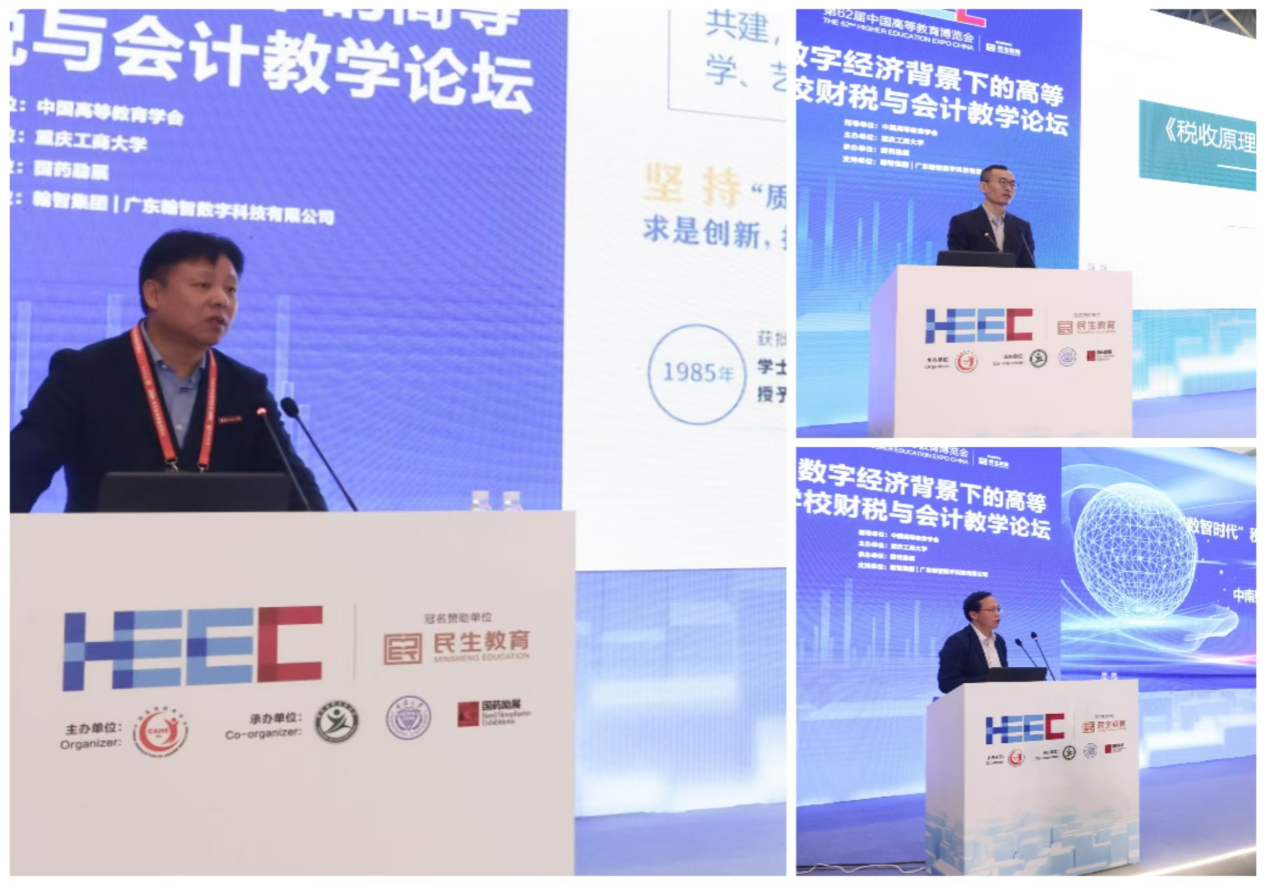 随着数字经济的快速发展,时代对财税与会计专业人才培养提出了新要求。作为第62届中国高等教育博览会系列学术活动之一,我院与会计学院联合承办的“数字经济背景下的高等学校财税与会计教学论坛”,于2024年11月15日在重庆国际博览中心馆内会议室成功举行。学校党委书记曾维伦、重庆市教委二级巡视员陈渝出席开幕式并致辞,学校党委常委、副校长杨柏主持论坛开幕式。