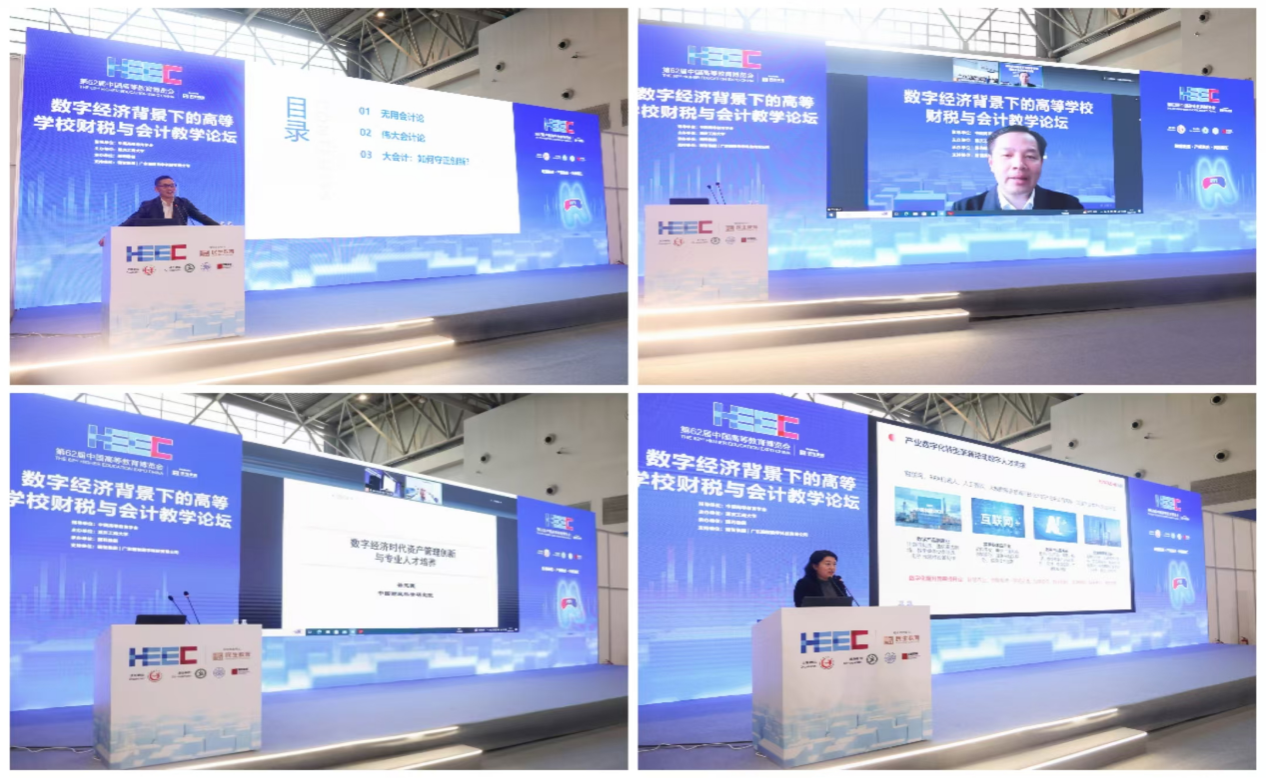 上海交通大学夏立军教授深入解读了经济社会中普遍存在的“大会计”理念;东北财经大学校长方红星教授带来了《前沿技术与会计教育:赋能还是重塑》的主题报告;中国财政科学研究院副院长徐玉德研究员聚焦于数字经济时代的资产管理创新与人才培养;广东翰智数字科技有限公司副总裁康琳则从“新技术、新商业、新商科”视角,论述了产业如何赋能大学专业建设与人才培养。