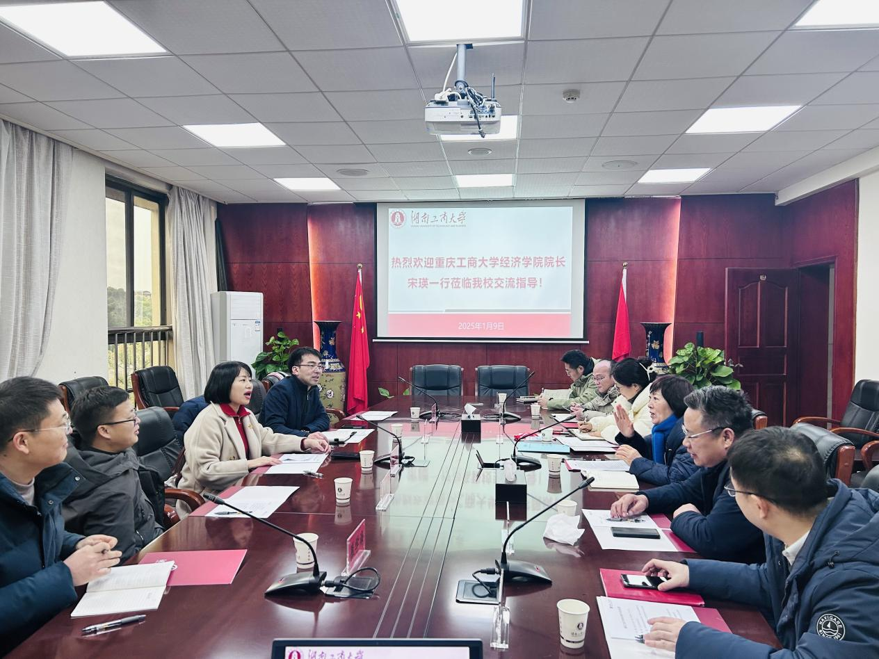1月9日下午,调研组一行又来到了湖南工商大学。在这里,他们受到了本科生院院长刘导波教授和经济贸易学院院长向国成教授等人的热烈欢迎。双方围绕学科建设、专业调整优化、人才培养、教学改革、数字经济平台以及师资队伍建设等方面进行了深入的经验交流。刘导波院长和向学成院长分别介绍了湖南工商大学在数字经济领域的研究方向、课程设置以及实践教学等方面的做法和成效。调研组就太阳成集团tyc122cc在相关领域的发展提出了自己的见解和疑问。双方还就未来可能的合作机会进行了初步探讨,期望能够在数字经济人才培养、平台建设和科研合作等方面实现共赢。