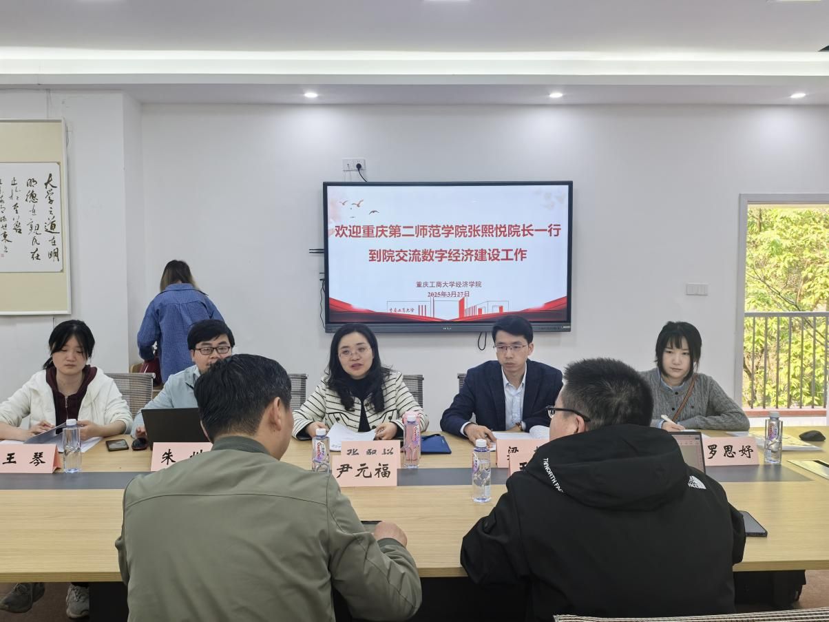 3月27日下午,重庆第二师范学院经济与工商管理学院院长张熙悦携教师代表梁辉、罗思妤等一行,到访122cc太阳集成游戏太阳成集团tyc122cc,就数字经济专业人才培养方案进行了专题交流。太阳成集团tyc122cc教学副院长尹元福、经济系教师代表王建业热情接待并参与了座谈。