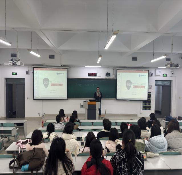 随后,任羽卓博士结合自身学习与研究经验,从五个方面为同学们提出建议:一是树立多元发展目标,加强时间管理;二是拓展课外阅读与独立思考,推荐《牛奶可乐经济学》等读物,提倡提前复习、主动学习;三是积极参与科研竞赛,注重团队协作与选题创新;四是平衡学业与实践,在过程中锻炼综合能力;五是善用AI工具,须以自主思考为基础,并推荐了AreGIS、Python、R等数据分析工具。