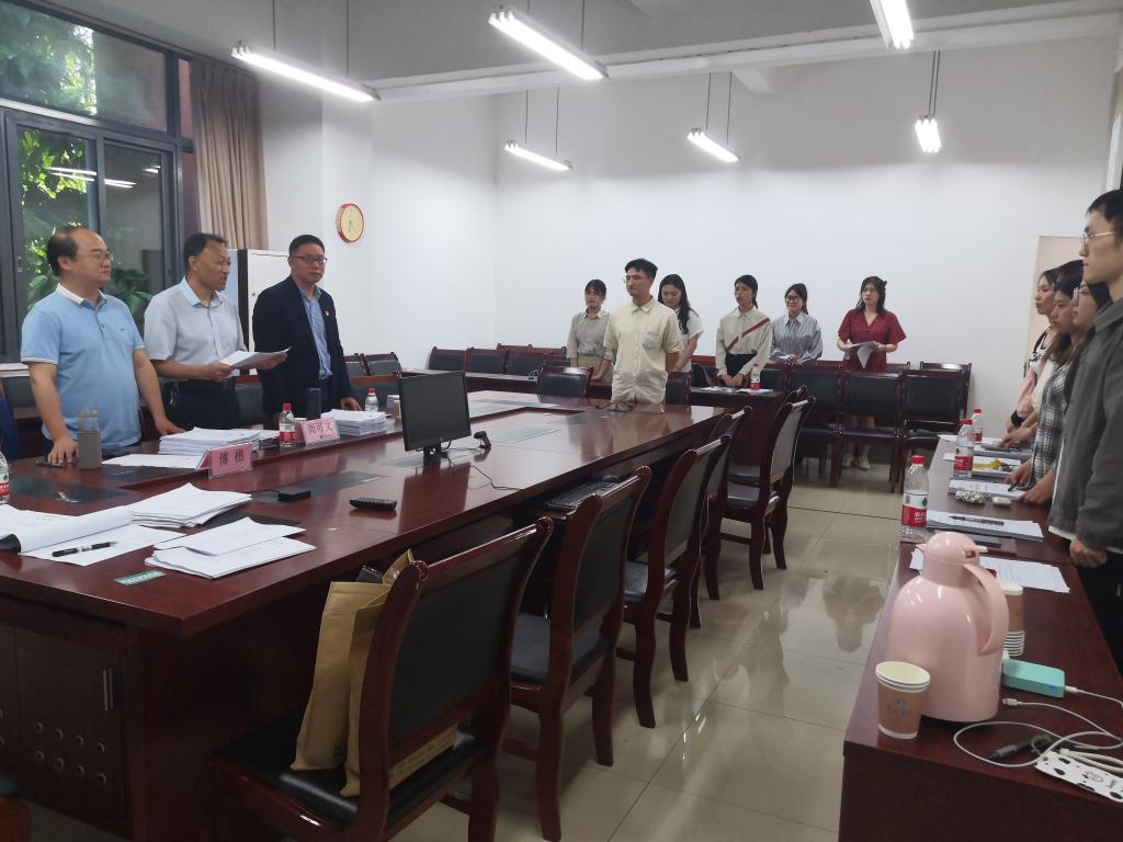 首先,专家组组长介绍与会专家、答辩程序及相关要求。其次,学生做学术诚信承诺并汇报学位论文,答辩专家根据论文内容进行提问,并由学生做出回答。最后,经答辩专家组评议后,当场宣布答辩结果。