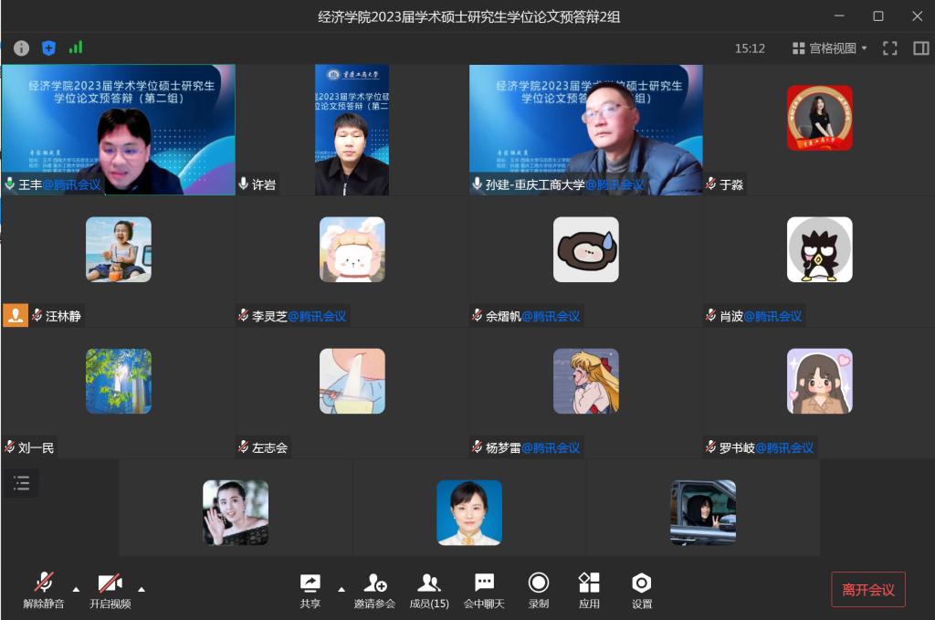 2023年1月6日,太阳成集团tyc122cc组织开展了2023届学术学位硕士研究生学位论文预答辩。本次学位论文预答辩分为两组进行,西南大学黄庆华教授和西南大学王丰教授分别担任专家组组长,中南财经政法大学薛钢教授、122cc太阳集成游戏黄潇教授、孙建教授和许岩副教授任专家组成员,学院2021级、2022级硕士研究生参与旁听。