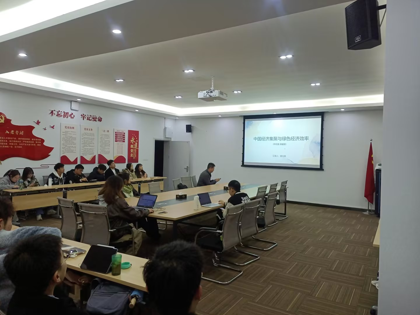 本次活动中,首先由2022级西方经济学专业研究生赵婷婷分享题为《从脱贫攻坚走向共同富裕:中国相对贫困动态识别与贫困变化的量化分解》的学术论文。她从以“中国贫困”为基准点阐述论文整体逻辑脉络,重点讲解论文研究中三成分分解法理论模型、中国绝对贫困发生率与相对贫困发生率识别与演变,强相对贫困与弱相对贫困指标分解以及城乡、区域与省际差异化相对贫困指标动态横向对比,同时分享了其个人对该文献在差异化分解、相对贫困收入均值基准和其他论文可拓展之处的观点。其次,由2022级人口、资源与环境专业研究生蔡元英分享题为《中国经济集聚与绿色经济效率》的学术论文,她从“绿色发展”概念提出背景出发,聚焦中国绿色经济,推导绿色经济效率构建方法理论模型,分析了经济集聚和“绿色发展”之间的相互影响关系,并在此基础上讲解文章计量实证模型、核心指标选取、工具变量选取与实证回归结果。同时,与大家共同探讨了工具变量选取所引起的内生性问题。此外,许岩老师就该文献中关于“内生性检验”、“中介效应模型”、“工具变量”以及其他指标有效性选择问题发表相应观点与意见。