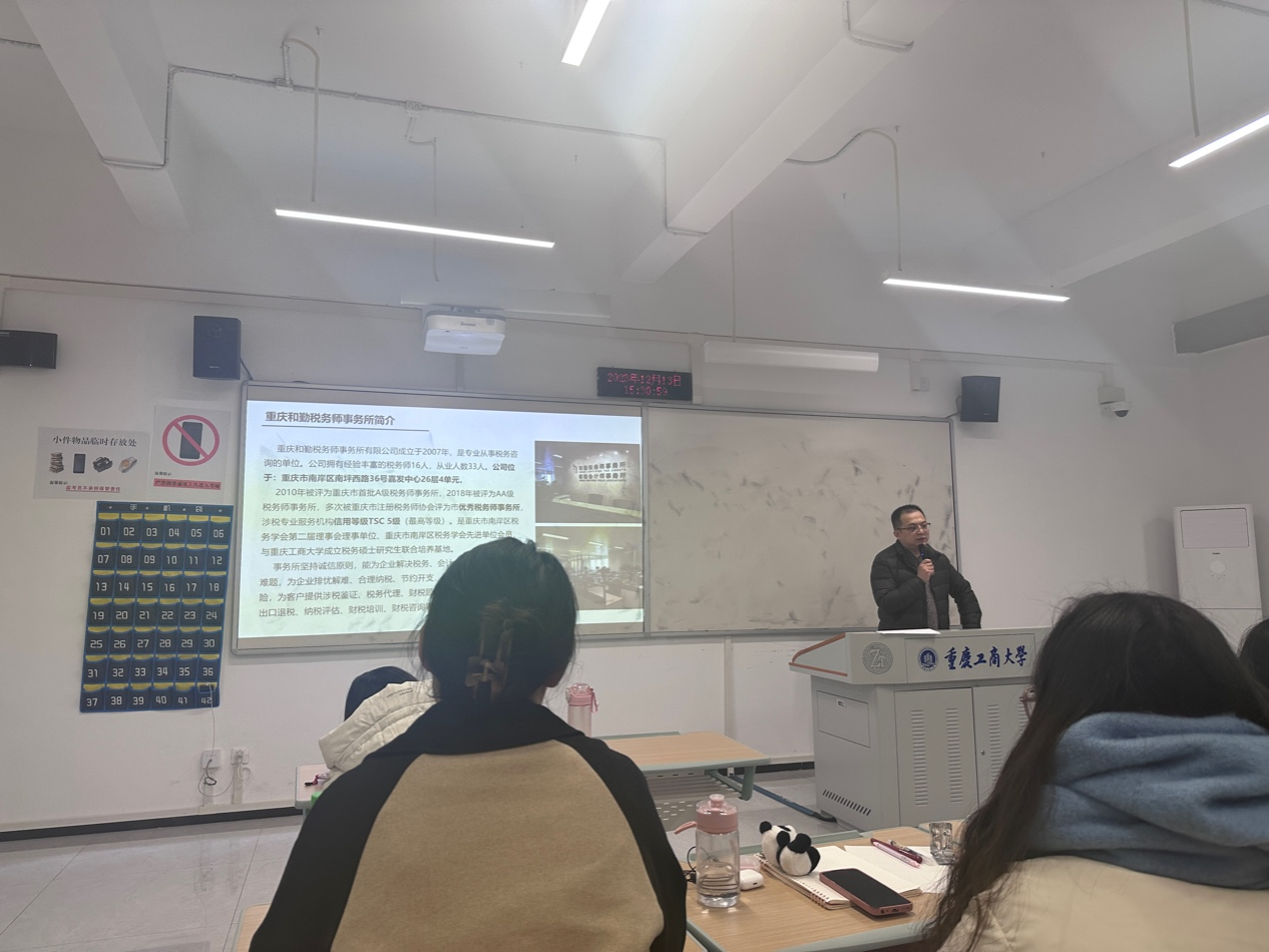 2023年12月13日,“122cc太阳集成游戏-重庆和勤税务师事务所”市级研究生实践基地实习动员会在我校研究生院举行。重庆和勤税务师事务所副所长兼我校研究生实践基地事业导师葛勤毅;“122cc太阳集成游戏-重庆和勤税务师事务所”市级研究生实践基地负责人杨寓涵博士,财税系老师杨娟博士以及36名税务专硕研究生参与此次实习实践动员大会。