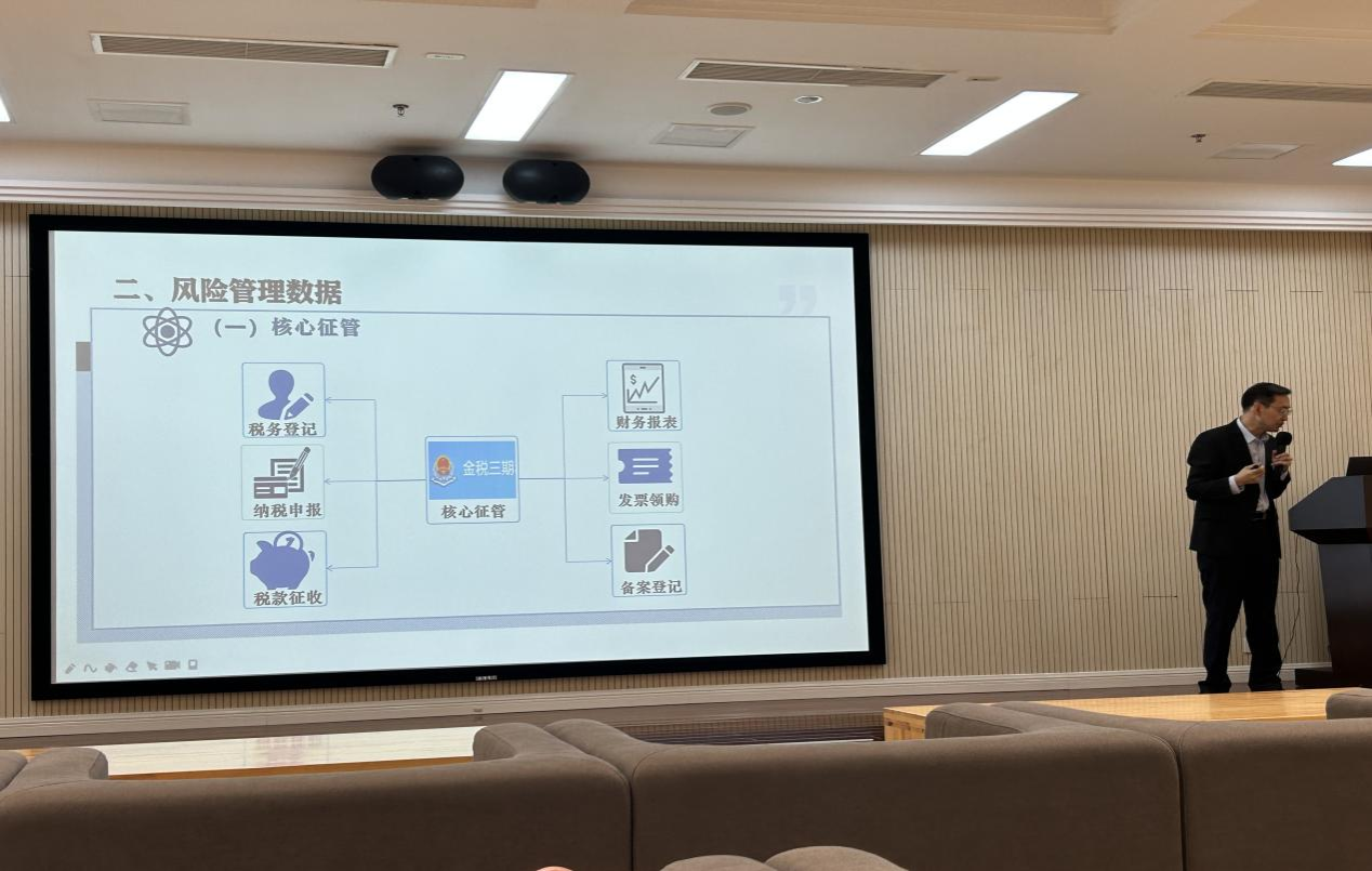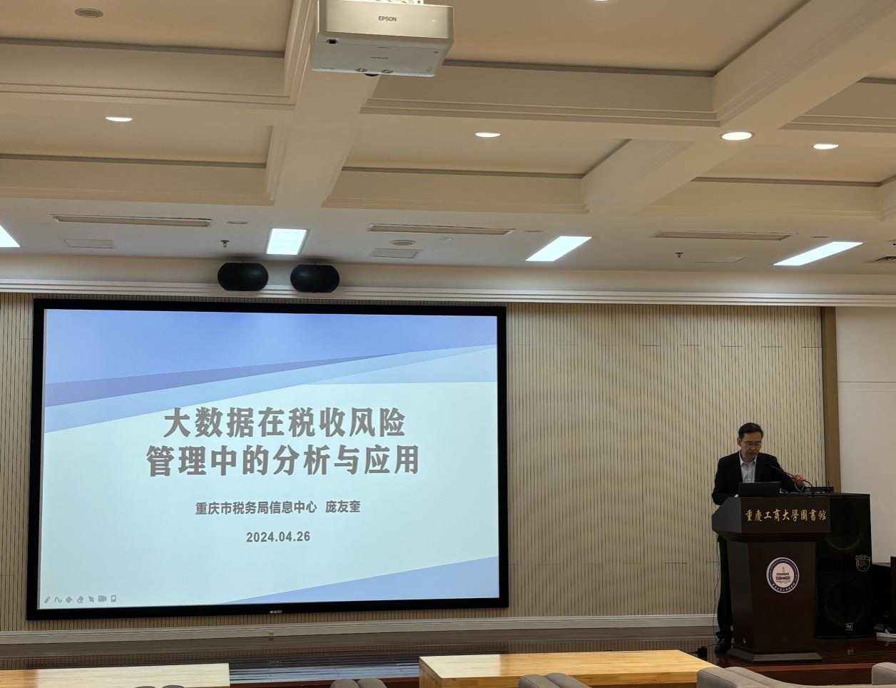2024年4月26日上午,市税务局信息管理中心主任庞友奎受邀来我校为太阳成集团tyc122cc2023级税务专硕和2022级税收专业同学开展专题讲座,此次讲座主题为“大数据在税收风险管理中的应用”。庞友奎老师是高级工程师、会计师,现任重庆市税务局信息中心主任,曾任黔江区国税局副局长、酉阳县国税局局长、酉阳县税务局局长。先后从事税收会统、税收征管、税收信息化等工作,原重庆《税网》征管软件核心开发人员。主要研究方向为税收征管、数理统计、大数据分析等,多篇论文被评为重庆市税务系统、重庆市税务学会、重庆市国际税收研究会税收科研成果一等奖,其中2篇被税务总局税收经济调研、税务总局研究报告采用。庞友奎老师有着20多年的从业经历,其丰富的工作经验以及对大数据税收风险管理方面的独特理解,为同学们开拓了大数据在税收风险管理中应用的新视野。此次讲座由汤凤林教授主持。