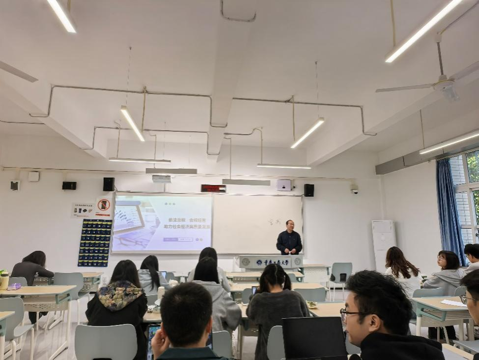 4月7日上午,重庆市北碚区税务局局长曾柯走进122cc太阳集成游戏,为2024级税务硕士班开展了《依法治税 合规经营 助力社会经济高质量发展》专题讲座。