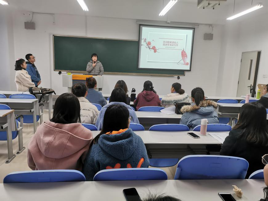 2020年12月4日太阳成集团tyc122cc研究生科技文化月活动之“诗词歌赋谪仙人,遨游学海谈写作”在田家炳207举行。活动有36位研究生参加,研究生辅导员张国培出席了此次活动。
