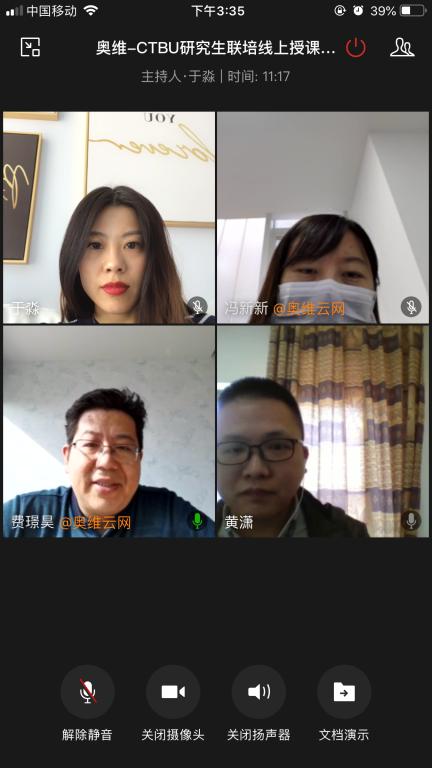 为深化校企协同合作,切实发挥研究生联合实践基地的作用,4月26日下午,学院同北京奥维云网大数据科技股份有限公司(以下简称奥维云网公司)共同召开了远程工作会。太阳成集团tyc122cc副院长黄潇、研究生秘书于淼老师,奥维云网公司总架构师费璟昊、经理冯新新共同参加了此次会议。