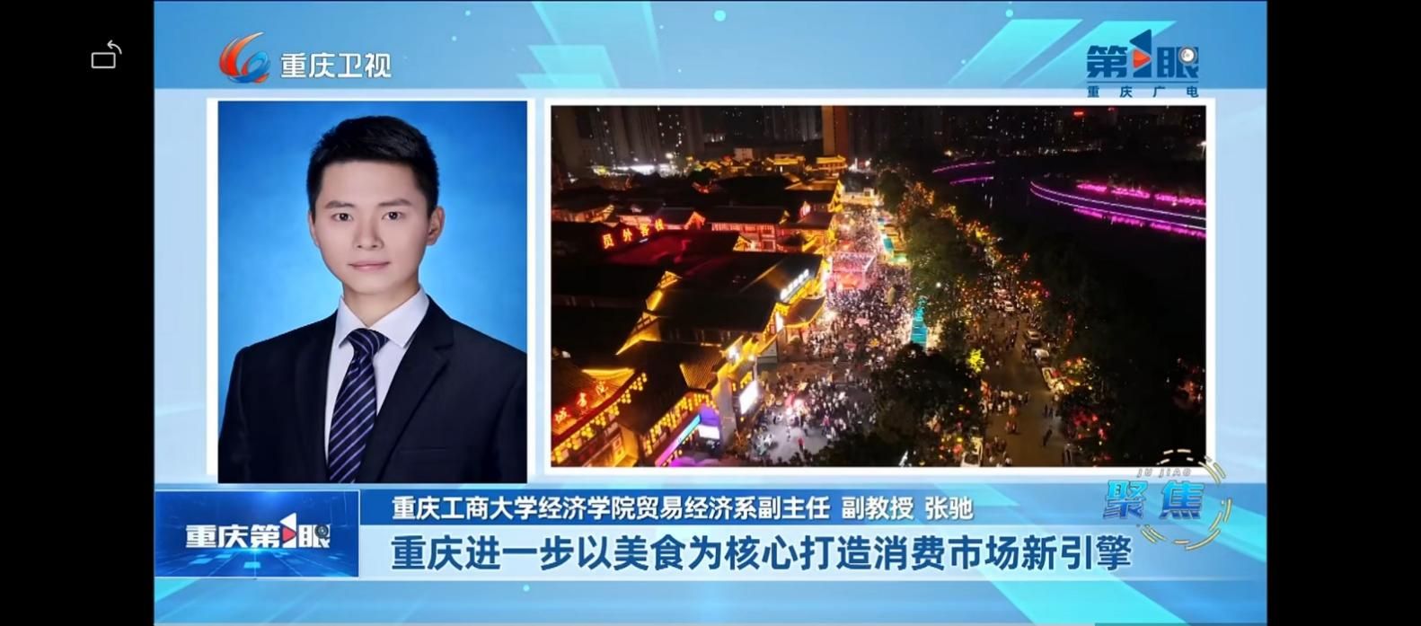 5月10日,重庆卫视第1眼报道《为美食奔赴一座城,“烟火山城”点燃消费新引擎》中,我校太阳成集团tyc122cc贸易经济系副主任张驰副教授就如何将重庆进一步打造成消费市场新引擎接受采访。