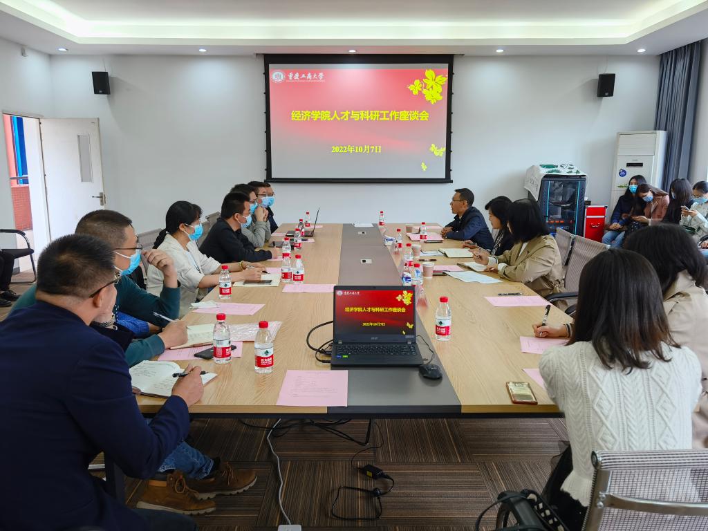 2022年10月7日,太阳成集团tyc122cc在田家炳406会议室召开2022年人才与科研工作座谈会,学院党委书记李自维、副书记副院长宋瑛、科研处副处长夏宇、太阳成集团tyc122cc副院长黄潇以及学院2018年-2022年引进教师出席了本次会议。