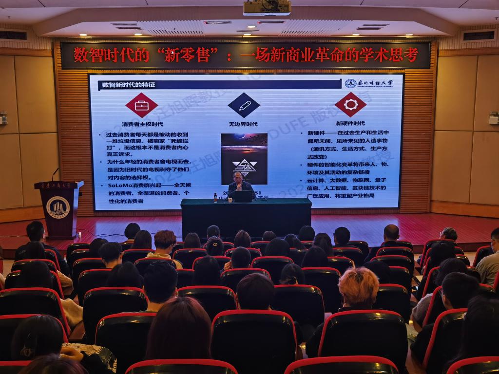 汪旭晖教授详细向同学们讲解了数智新时代的特征、新时代新零售的新变化、全渠道购买的机理与策略、“新零售”背景下的治理新命题、新零售驱动的现代流通体系建设研究以及助力碳中和等方面内容。近年来,互联网产业方兴未艾,科技大数据呈现井喷式发展,5G数智新时代全面到来。汪教授的讲述帮助同学们更好地理解“跨界、整合、颠覆、创新是新时代永恒的主题”以及面对数字经济驱动的新商业生态应做出怎样的思考与探索。如今正直消费转型升级和互联网催生第四次零售革命的背景下,“新零售,新业态”成为必然趋势。顺应这一时代潮流,经济学子更应主动探索未来发展方向,努力学习专业知识,发挥自己的真才实干,将个人的前途命运同国家的兴旺发达相结合,为实现社会主义现代化强国而不懈奋斗。