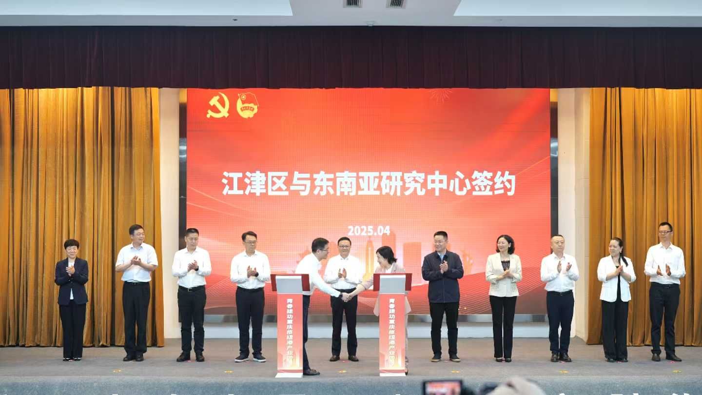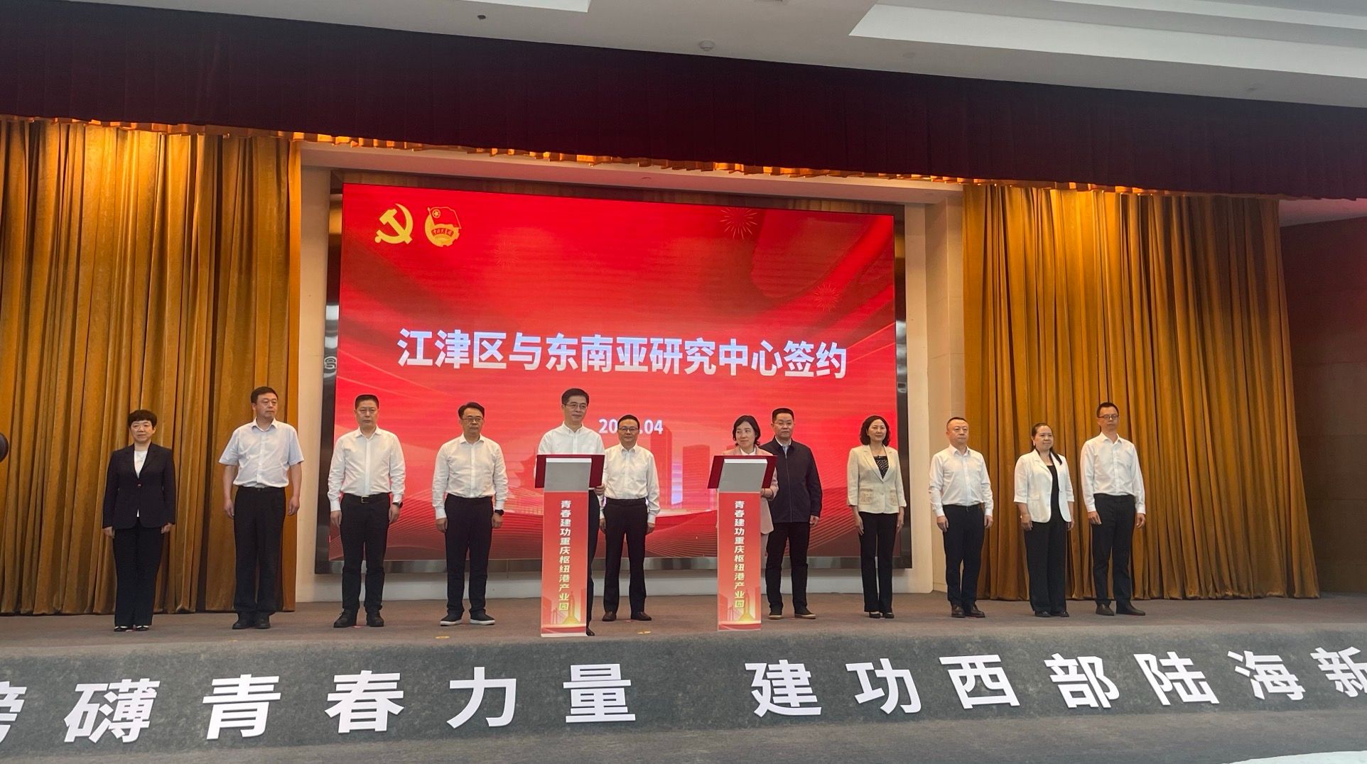 作为教育部备案的区域与国别研究中心,我校东南亚研究中心长期深耕东南亚区域经济、国际物流与贸易、跨文化交流等领域研究,致力于为政府决策和企业发展提供智力支持。此次与江津区合作,中心将充分发挥学科优势与智库作用,聚焦西部陆海新通道主枢纽建设需求,在政策研究、产业规划、国际合作等方面为江津区提供战略性咨询;同时,双方将联合打造产学研协同创新平台,推动研究成果转化,培育具有国际视野的高素质人才,助力重庆枢纽港产业园建设提速增效。