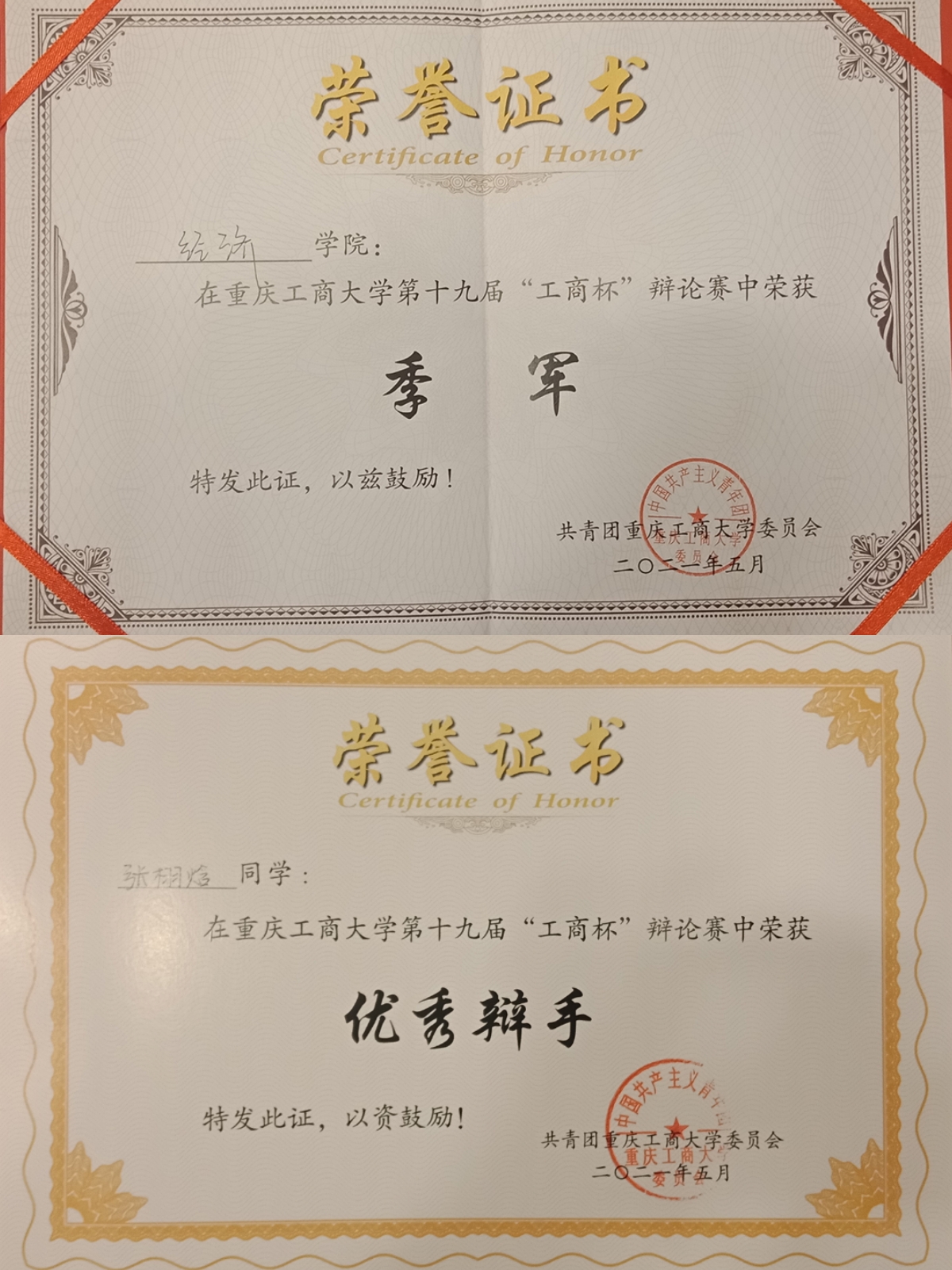 5月21日下午,由共青团122cc太阳集成游戏委员会主办的122cc太阳集成游戏第九届“新儒商”大学生体育文化节和第十九届“工商杯”辩论赛分别在122cc太阳集成游戏南区篮球场、博智楼7100圆满闭幕。太阳成集团tyc122cc学子在本次工商杯相关比赛中获得了可喜的成绩,分别获得了122cc太阳集成游戏第十九届“工商杯”辩论赛“季军”,122cc太阳集成游戏第九届“新儒商”大学生体育文化节之工商杯篮球联赛男子第五名“体育风尚奖”,122cc太阳集成游戏第九届“新儒商”大学生体育文化节暨第十二届“工商杯”足球联赛女子组“第七名”、男子组“体育道德风尚奖”。2018级贸易经济三班的张栩焓在122cc太阳集成游戏第十九届“工商杯”辩论赛中表现优异,荣获“优秀辩手”!