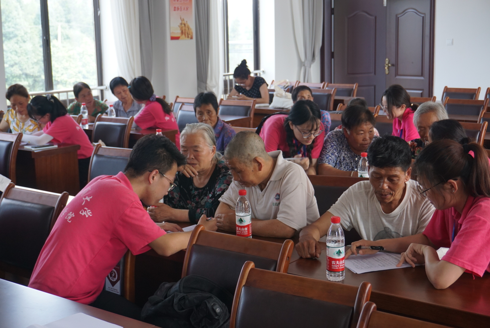 7月14日下午,在当地政府的大力支持下,实践团来到南湖村村民委员会,与当地数十位居民深入交流,指导其填写调查问卷。由于城镇化发展和农村剩余劳动力的转移,此次来接受问卷调查的农村居民绝大部分都是没有接受多少教育的老人。实践团成员一对一服务当地村民,用最朴实易懂的语言向其介绍问卷上的每一个问题,帮助他们顺利完成调查问卷的填写。南湖村支部书记赵长华从基层干部的视角独自完成了问卷调查的填写。他表示,在乡村振兴战略实施背景下,黎香湖镇南湖村因地制宜发展经济建设,提高公共设施质量,加大公共服务供给,农村居民的生活水平有了较明显的提高。从对当地居民的调查与交谈中,实践团了解到当地居民对政府基本公共服务政策具有较高的满意度。如,南湖村村民林女士对危房改造、社会服务等方面的改革发展深有感触,她感叹到,如今南湖村的乡村建设与过去相比已经有了翻天覆地的变化,从土阶茅屋到宜居小镇,从泥泞小径到柏油马路,从杂草荒地到遍地稻香,大家都觉得生活幸福了许多;村镇也很尊重当地居民的想法,始终坚持帮助乡邻走出贫困、走向富裕,致力于将乡村振兴的发展成果与当地村民共享。调查结束后,汤老师与实践团从完善问卷设计的角度对调查结果进行了整理分析,大家对调查过程中发现的问题交叉重复和表述过于学术化等提出了优化建议。