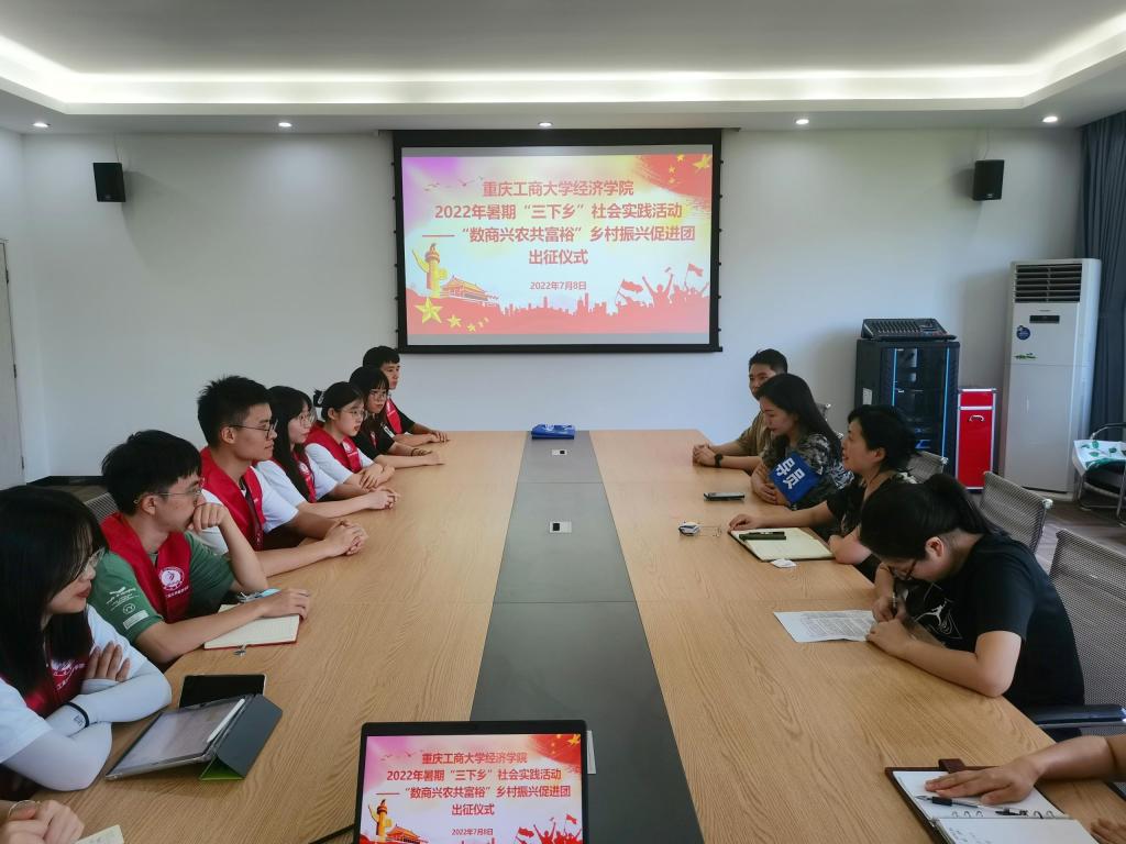 为深入学习宣传贯彻习近平新时代中国特色社会主义思想和党的十九届六中全会精神,贯彻落实习近平总书记关于青年工作的重要思想,深入学习习近平总书记在庆祝中国共产主义青年团成立100周年大会上的重要讲话精神,坚定信念听党话、跟党走,迎接党的二十大胜利召开,太阳成集团tyc122cc号召、组织全院学生开展2022年大学生志愿者暑期“三下乡”社会实践活动。7月8日上午,学院在田家炳406会议室举行了“数商兴农共富裕”乡村振兴实践团出征仪式,标志着学院2022年暑期“三下乡”社会实践活动正式启动。学院党委书记李自维教授,副书记、副院长王燕教授,实践团专业指导教师张驰博士及相关带队老师出席出征仪式。