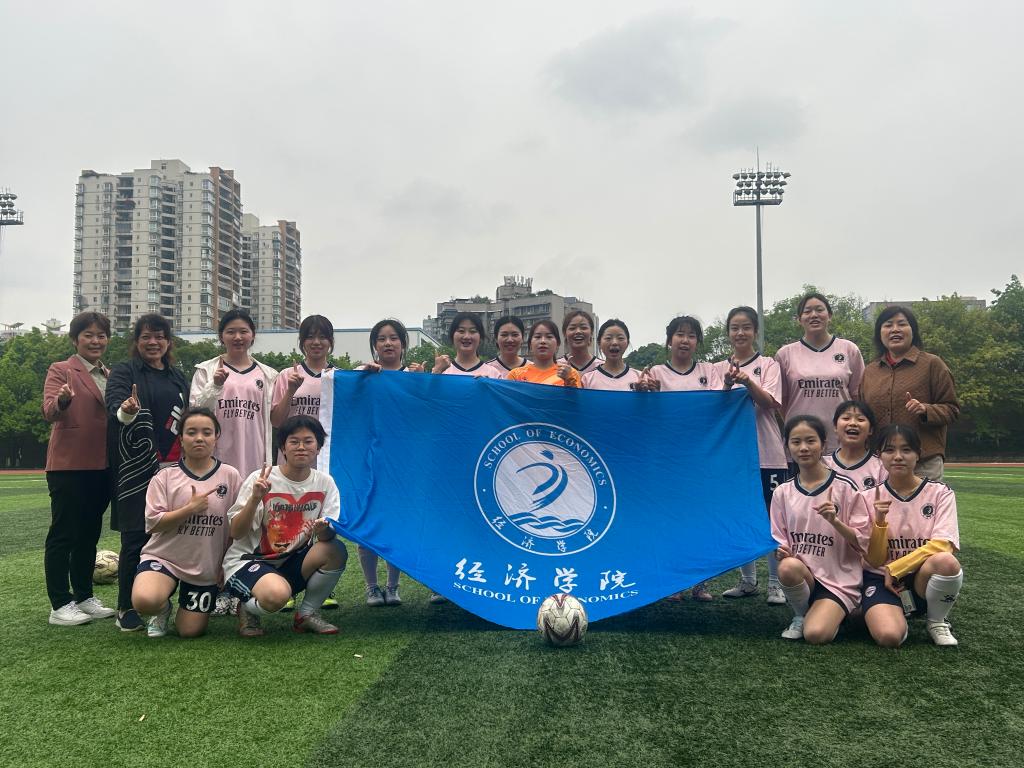 在小组赛中,经济女足一路势如破竹,以严丝合缝的防守体系和全力以赴的拼搏精神,踢出了气势,战出了风采,小组赛三胜零负的傲人战绩充分展现了经济女足卓越的团队实力和昂扬的精神风貌,也足以使她们步入决赛的战场。总决赛由我院女足对战体育学院,比赛开始,球员们迅速进入状态,双方球员你来我往,比赛十分激烈,经济女足队员们始终团结一致,拼搏奋斗,在赛场上赛出了她们的激情与坚韧。比赛已然结束,但经济女足前进的脚步不会就此停下,她们将继续追寻心中热爱,弘扬体育精神。