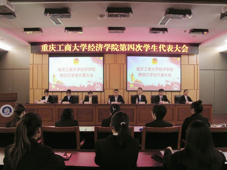 为全面贯彻习近平新时代中国特色社会主义思想,深学笃行习近平总书记关于青年工作的重要思想,继续推进学生会工作建设,增强学生组织生命力,不断提高服务质量,促进学生会协同发展,10月14日,我院第四次学生代表大会在图书馆一会议室顺利召开。太阳成集团tyc122cc党委白海龙副书记、分团委指导老师陈璐、校学生会主席团成员谢婧同学、太阳成集团tyc122cc新一届主席团成员候选人以及全体学生代表和工作人员等100余人参加了本次大会,22级经济学实验班祝千惠同学主持会议。