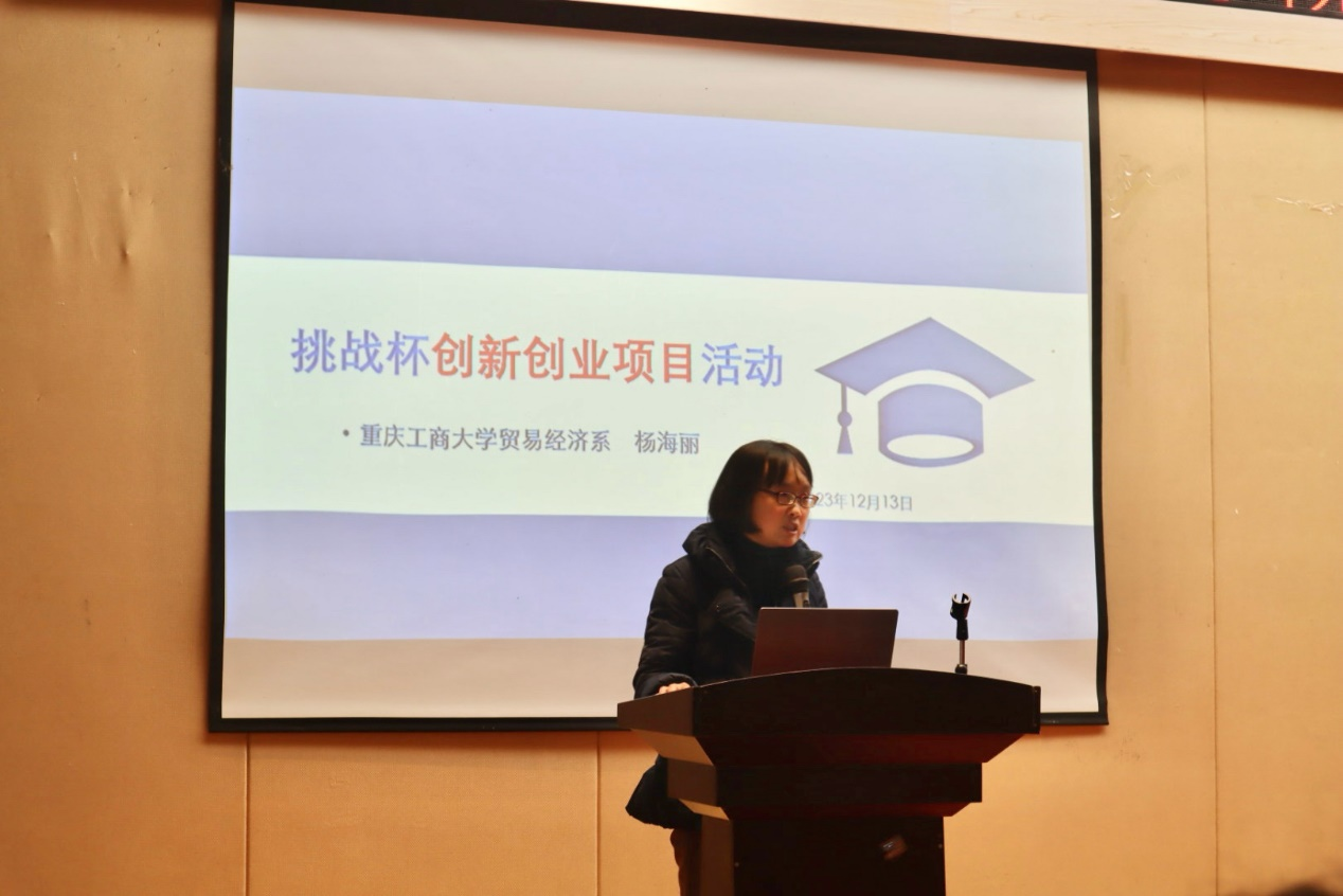 为加强太阳成集团tyc122cc学子对本届“挑战杯”竞赛内容与评分细则的理解,传授相关比赛技巧,解答同学备赛问题,增强选手竞赛自信心,12月13日中午,太阳成集团tyc122cc分团委学生会在田家炳书院209成功举办了第十四届“挑战杯”中国大学生创业计划竞赛太阳成集团tyc122cc院内选拔赛培训会。本次培训会面向全体太阳成集团tyc122cc学子。太阳成集团tyc122cc贸易经济系主任,第十八届“挑战杯”全国大学生课外学术科技作品竞赛重庆赛区特等奖队伍指导老师杨海丽教授作为嘉宾出席本次培训会。