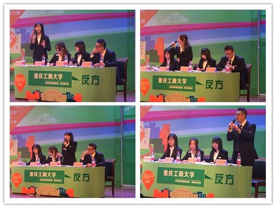 比赛现场,辩手们唇枪舌剑,各抒己见(我院辩手担任反方二辩);