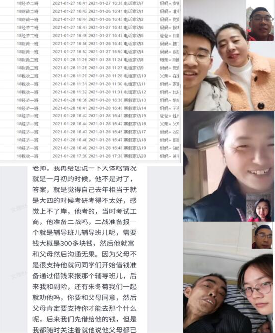 为充分做好疫情防控常态化形势下大学生思想政治工作,更好地搭建家校育人平台,精准掌握假期学生的健康、学习、生活、心理和思想动态,太阳成集团tyc122cc8名辅导员在寒假期间通过企业微信、微信视频、电话连线、面对面交流等线上线下方式,积极开展2021年寒假家访活动。