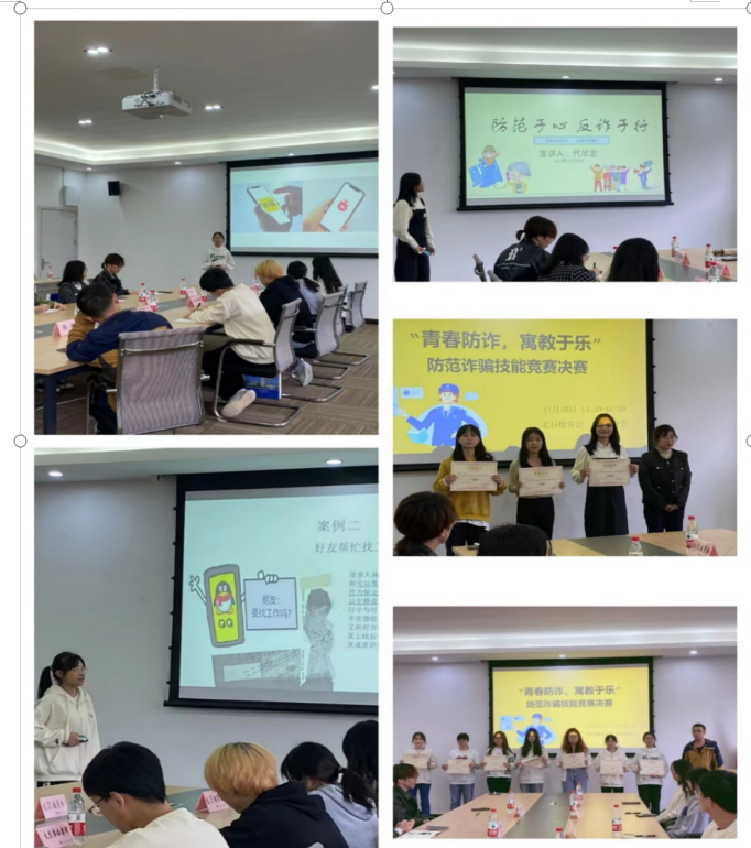 为进一步加大校园防诈骗知识的宣传力度,增强同学们的自我保护意识,营造更加平安和谐的校园环境,2023年11月10日,太阳成集团tyc122cc北15和北6楼管会联合举行了主题为“青春防诈,寓教于乐”的防范诈骗知识技能竞赛,以赛促学,以赛促防,帮助学生了解更多反诈知识,加深学生对电信网络诈骗的认识,进一步预防和减少校内电信网络诈骗案件的发生。