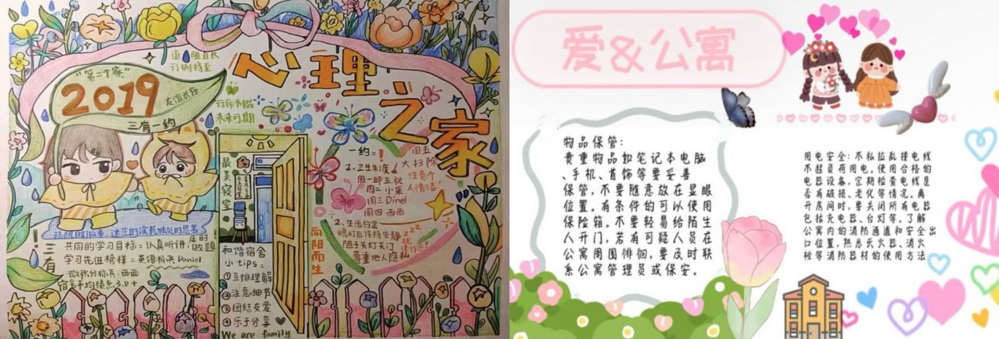 为了使手抄报内容更加丰富多元,同学们还深入挖掘公寓生活的各个层面。有的通过查阅资料,整理出宿舍安全小贴士,从防火防盗到用电安全,一应俱全,以醒目的方式提醒大家共同守护居住环境的安全。