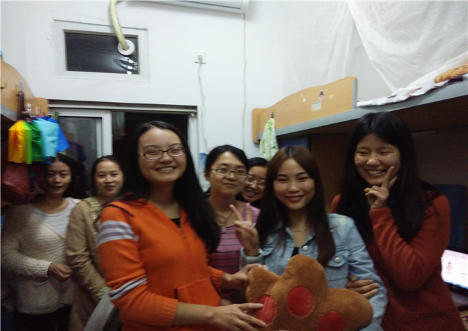 生日每个人都会有,但不一定每个人都会庆祝生日,北六楼栋秉承着“关爱”的宗旨,尽心尽力为寝室同学生活营造良好的大家庭环境,在楼栋干部第一次见面会上党委书记雷菁老师为我们揭开了十月的“幸运之星”,这颗幸运之星就是11级国贸三班的高彩霞。为了给她庆生,北六楼管会精心准备了一份礼物,并集体于10月18日晚前往高彩霞寝室,给她送去了楼栋的礼物和祝福。